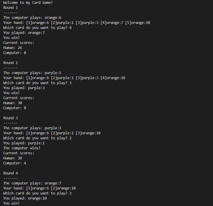 This program uses fundamentals of object oriented programming to play a simple card game against the computer.